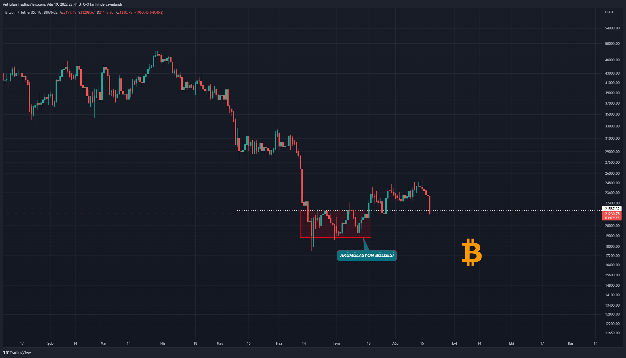 Lider kripto para birimi Bitcoin bu geceki günlük kapanışını 21.500 doların altında yapması halinde ilerleyen günlerde akümülasyon bölgesinin alt trendi olan 19 bin dolara kadar gerileyebilir.