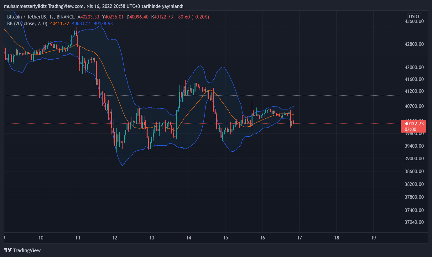 An itibariyle kısa vade olarak baktığımız 1 saatlik grafikte, bollinger bandının alt desteğini kaybeden Bitcoin, ilerleyen saatlerde 40.250 dolar seviyesini geri kazanmadığı sürece düşüşe devam edebilir.