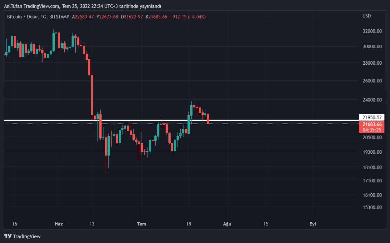 Geçtiğimiz günlerde 22 bin dolar – 19 bin dolar aralığında akümüle olan Bitcoin, 22 bin dolar direncini aşmasıyla birlikte birçok kripto para yatırımcısını umutlandırmıştı.