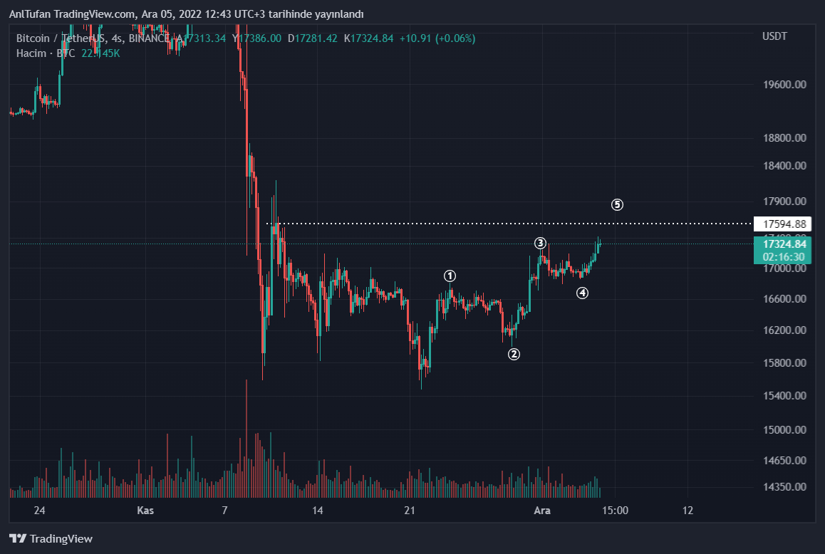 Bu 5. evrenin 17.500 – 18.200 dolar aralığında son bulması bekleniyor. Her ne kadar Bitcoin’in 18.200 dolara ulaşması çok zor dursa da, olası likidasyon operasyonu için fitiller gelebilir.