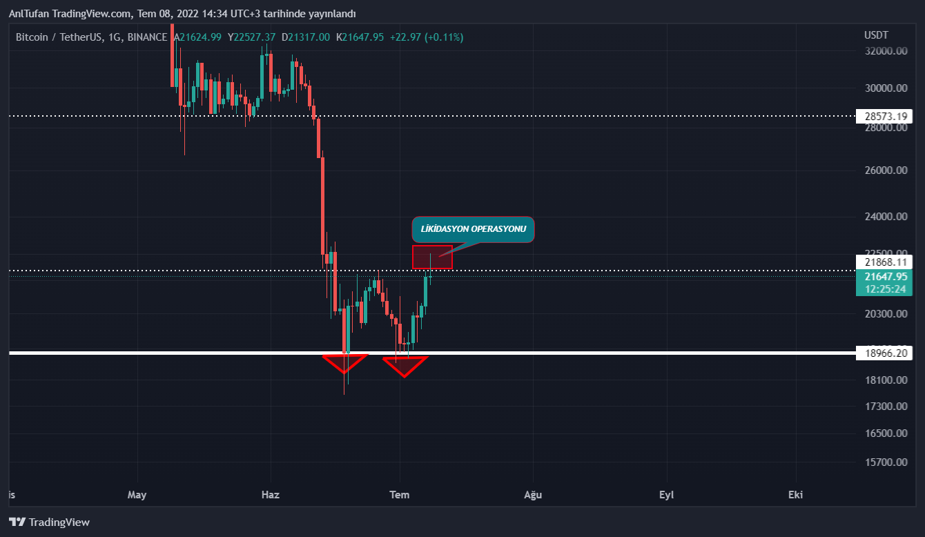 Şuan itibariyle 21.800’ün üzerindeki yükselişin bir likidasyon operasyonu olduğunu anlıyoruz. Bu yapılan operasyon ise yine altcoinleri derinden etkilemiş durumda.