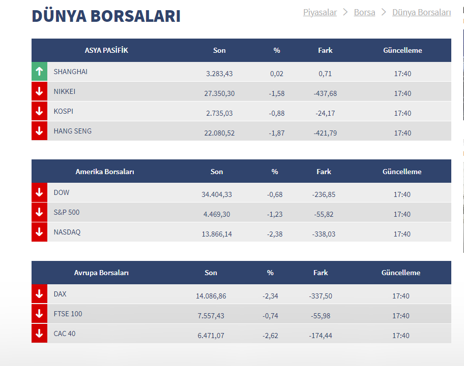 Uzun bir süredir ABD borsalarıyla korele bir şekilde hareketlerini sürdüren Bitcoin, yine en büyük ABD endeksleri olan SP 500, Dow Jones ve Nasdaq‘ın satış yemesiyle birlikte düşüşe geçti.