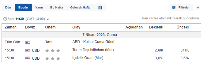 Bugün itibariyle ise TSİ 15.30’da Tarım Dışı İstihdam verisi ve İşsizlik Oranları açıklanacak. Her ne kadar öncü veriler istihdam piyasasının zayıfladığını gösterse de, Bitcoin bu 2 veriye göre yön tayin edecek.