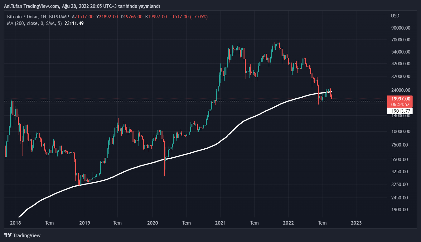 Bu haftayı da 200 haftalık hareketli ortalamanın altında kapatacak olan lider kripto para birimi birimi Bitcoin (BTC), 19 bin doların kati suretle altına sarkmaması gerekiyor.