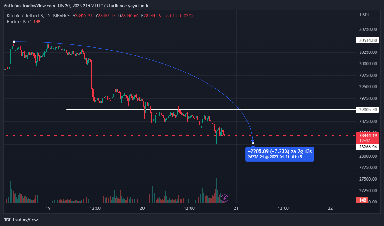 Haberimizin yazıldığı esnada 28.500 dolar seviyelerinden işlem gören BTC, son 2 gün içerisinde toplamda yüzde 8’e yakın bir düşüş yaşadı. BTC’nin yüzde 8’lik düşüşü altcoin’lerde yüzde 20’lik bir düşüş getirdi.
