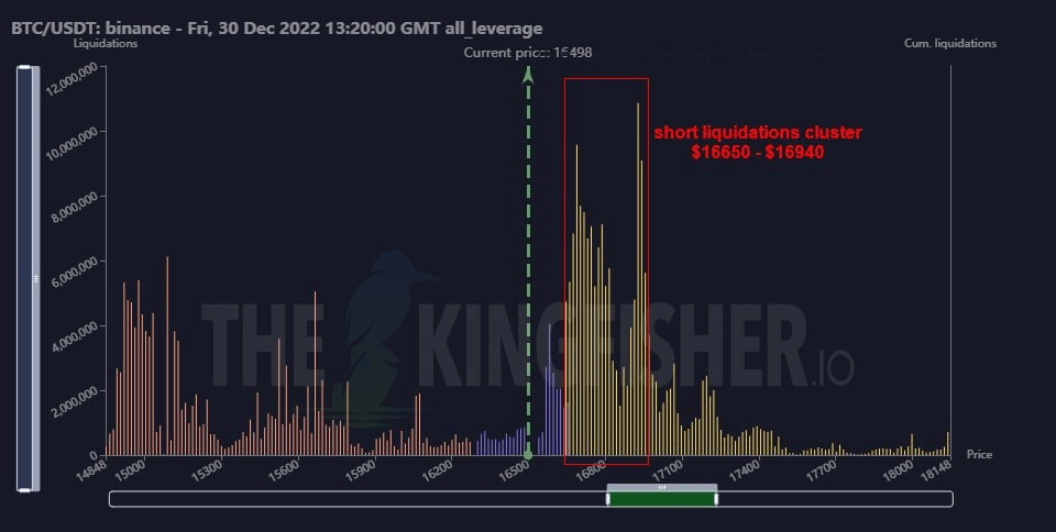 16.650 dolar ile 16.940 dolar arasında kısa bir tasfiye kümesi oluşmuş durumda. İlerleyen saatlerde piyasa yapıcılar buradaki likidasyonu almak için yeni bir yükseliş başlatabilir.