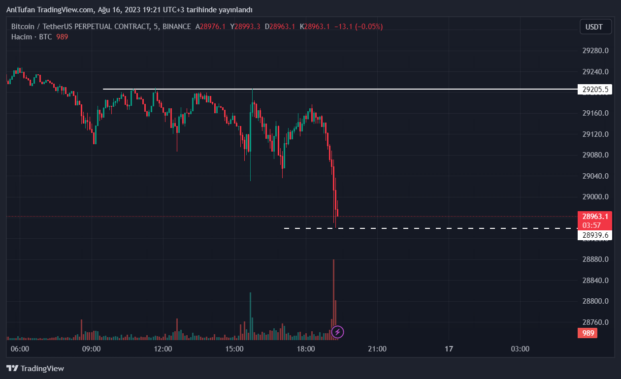 Bir süredir 29.200 dolar seviyesinden reddedilen Bitcoin, son dakikalarda 29 bin doların da altına sarkarak 28.940 doları gördü. BTC’nin bu düşüşü yine altcoin’leri kötü etkiledi.