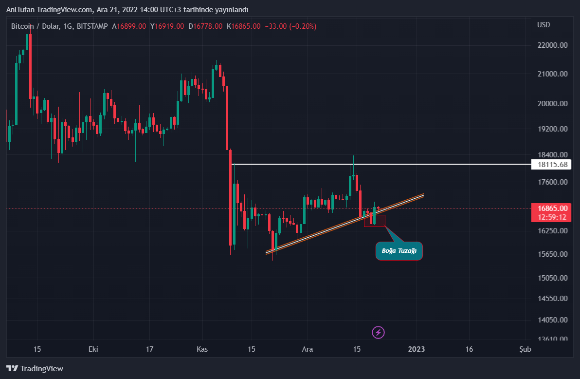 Her ne kadar Bitcoin 19 Aralık tarihinde günlük grafik üzerindeki yükselen trendinin altına sarkmış ve 16.300 dolara kadar gerilemiş olsa da, bu düşüş sonrasında boğaların hızlı bir şekilde devreye girdiği görüldü.