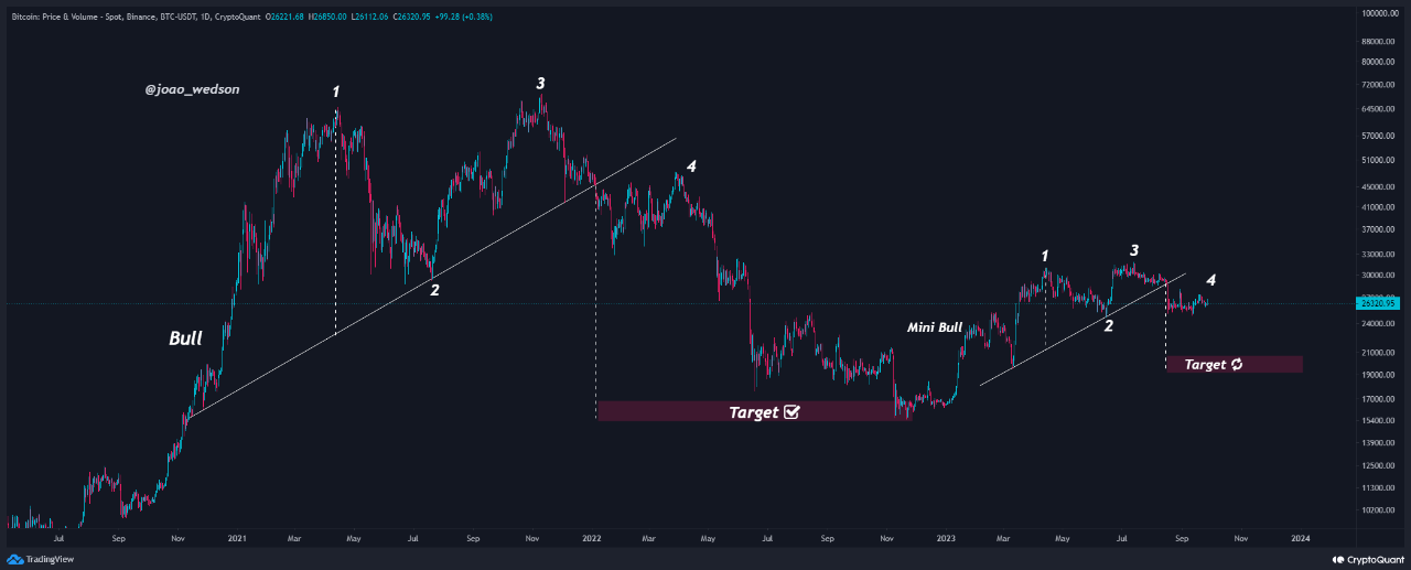 Joao Wedson son boğada yükselen trend kırılımı sonrasında yaşanan düşüşün bir benzerinin BTC’de yeniden yaşanacağını düşünmekte. İşte Wedson konuya ilişkin paylaştığı analizi: