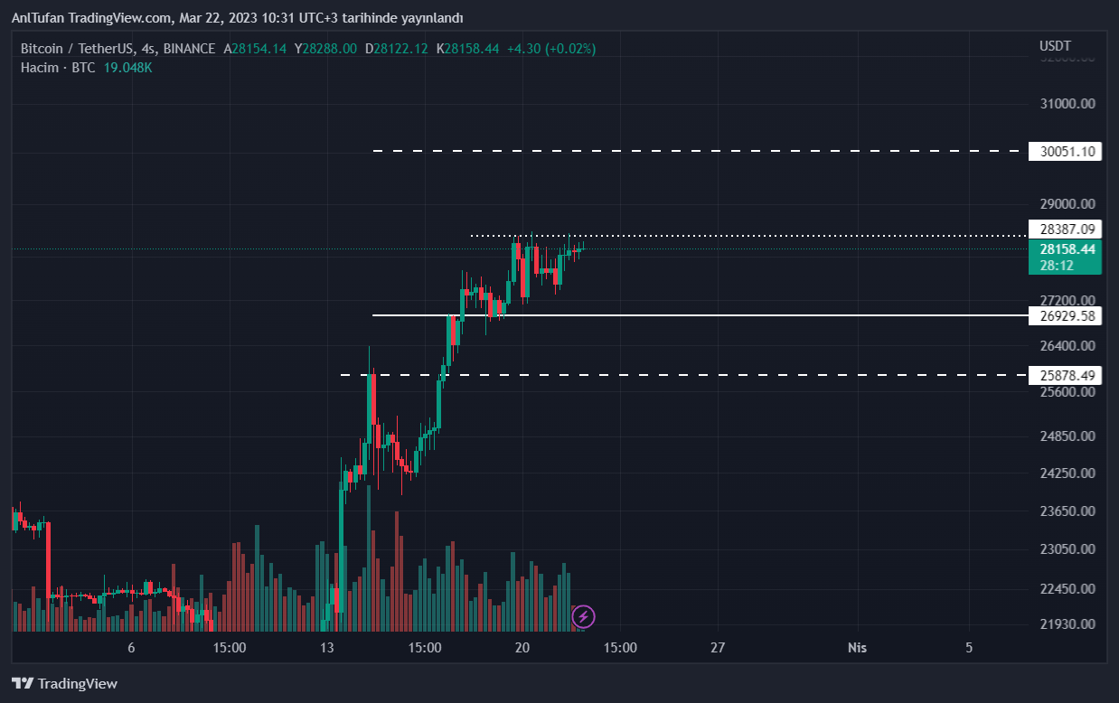 25 baz puanlık bir faiz artışının yapılması halinde, Bitcoin’in 27 bin – 28.400 dolar aralığında yukarı aşağı sert hamleler gerçekleştirmesi beklenmekte. Faizlerin sabit tutulması halinde ise BTC’nin 28.400 doları aşıp 30 bin dolara ulaşması bekleniyor.
