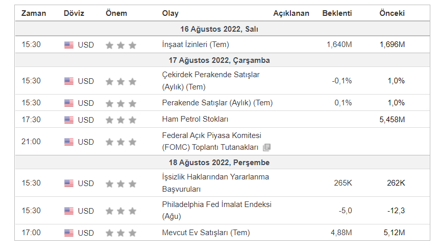Yarın itibariyle ise FED son Federal Açık Piyasa Komitesi (FOMC) toplantısının tutanaklarını açıklayacak. 26-27 Temmuz tarihli FOMC toplantısından 75 baz puanlık faiz artış kararı çıkmıştı.