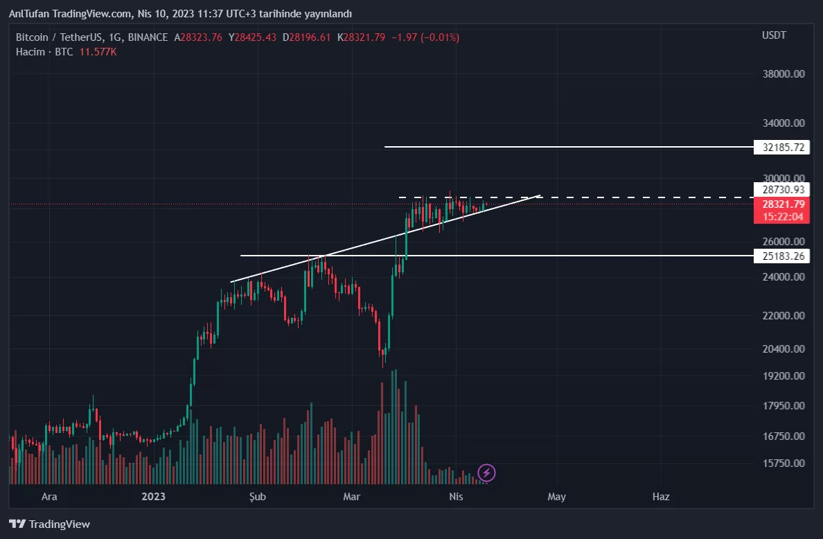 İlerleyen günlerde lider kripto para birimi Bitcoin’in (BTC) 28.800 dolar direncini aşmayı başarması ise 32 bin dolar seviyelerine kadar bir yükselişin yaşanmasını sağlayabilir gibi gözüküyor.