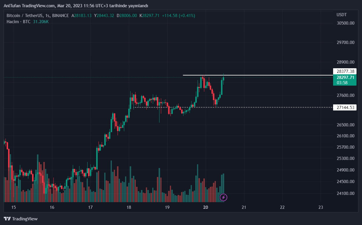 Şuan itibariyle ise Bitcoin’deki kritik seviyenin 28.377 dolar olduğu gözlenmekte. BTC’nin bu direnç seviyesi üzerinde 1 saatlik kapanış yapması, 29 bin dolar direncini dahi hedeflemesini sağlayabilir.