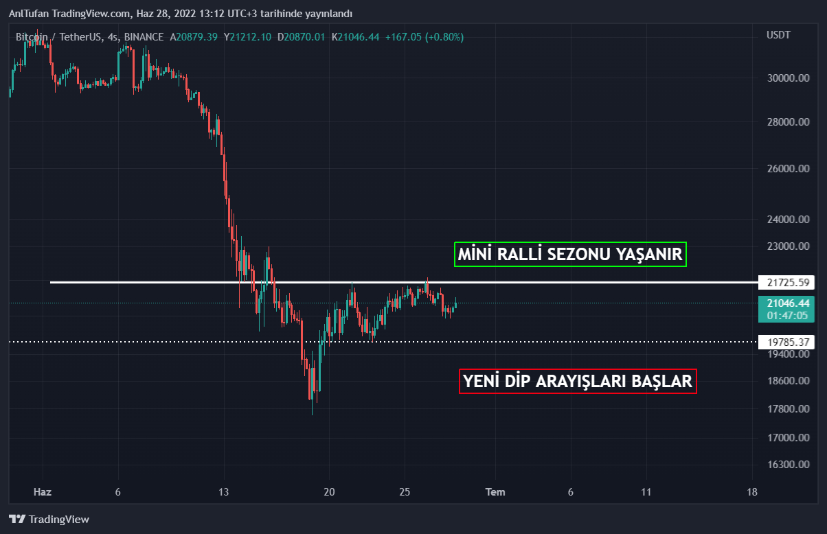 19.700 dolar desteğinin kaybedilmesi durumunda ise ilk etapta son dip seviyesi olan 17.800 dolara kadar gerilemesi beklenen BTC, bu seviyeyi de kaybetmesi halinde ise 16 bin – 15 bin dolar aralığına geri çekilebilir gibi gözüküyor.