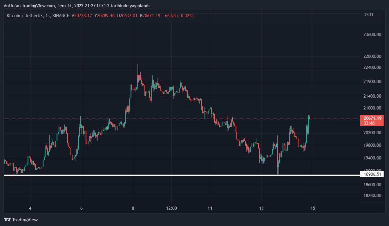 Haberimizin yazıldığı esnada 20.700 dolar seviyelerinden işlem gören lider kripto para birimi Bitcoin, 19 bin dolar desteğinde tutunmayı başararak tekrardan yukarı yönlü hareketler sergiledi.