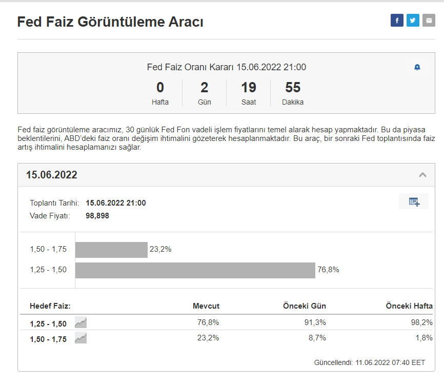 Haziran ayının 15’inde Amerikan Merkez Bankası (FED) yeni faiz kararını açıklayacak. Geçtiğimiz günlerde gelen enflasyon verileri ise birçok yatırımcının “FED, 75 baz puanlık faiz artışı yapabilir” şeklinde düşünmesine neden oldu.