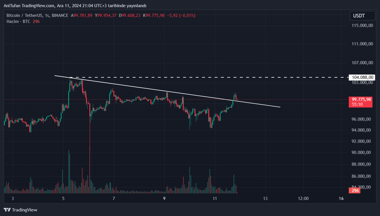 Şuan itibariyle Bitcoin her ne kadar 101 bin dolardan reddedilmiş ve ufak bir düşüş yaşamış olsa da, halen düşen trendin üzerinde yer aldığı görülüyor.