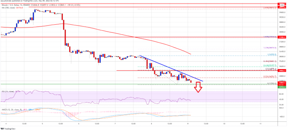 Kripto para piyasası kısa süre içerisinde 500 milyar dolarlık kayıp yaşadı ve BTC ilk başta 36.000 dolar, devamında 34.000 dolar, şimdi ise 33.000 dolar desteğine kadar geri çekildi.