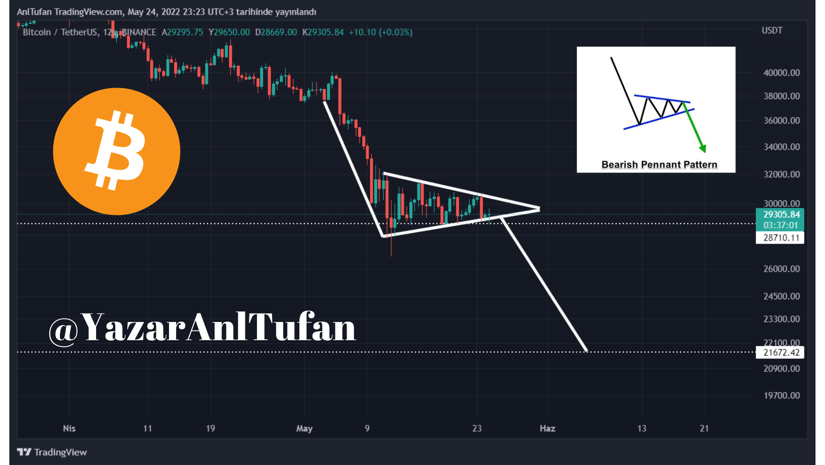 Haberimizin yazıldığı esnada 29.350 dolar seviyelerinden işlem gören Bitcoin, kritik bir ayı formasyonu oluşturmuş durumda.