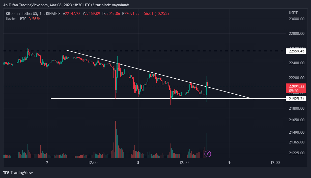 Son dakikalarda bu duyuru ışığında düşen trendini kıran Bitcoin, ilerleyen saatlerde 22.070 dolar seviyelerinde tutunmayı başarması halinde 22.550 dolar seviyelerini hedefleyebilir.