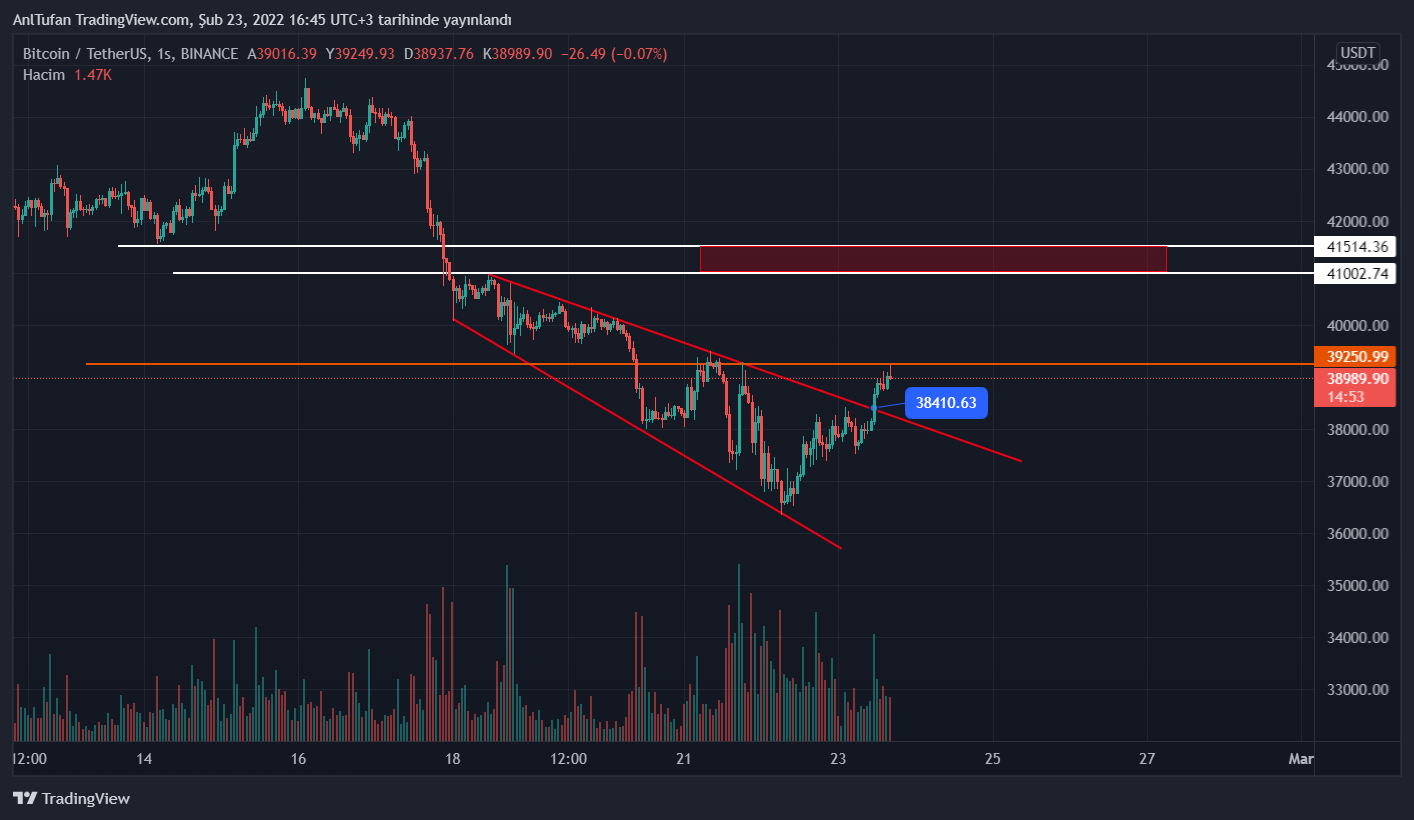 ABD borsaları yükseliş ile açılsaydı, Bitcoin’in formasyon hedefi olarak belirttiğimiz 41.000 – 41.500 dolar aralığına kadar bir yükseliş yapabilecek olan Bitcoin’de ABD borsa açılışlarını yakından takip etmek gerekiyor.