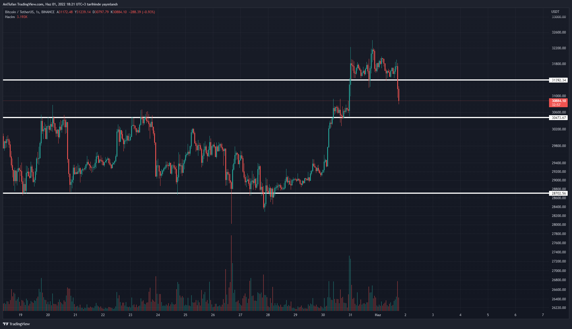Halen hiçbir tepki verememiş olan Bitcoin, ilerleyen saatlerde 31.400 dolar seviyesini tekrardan kazanması halinde yükseliş yaşayabilir.