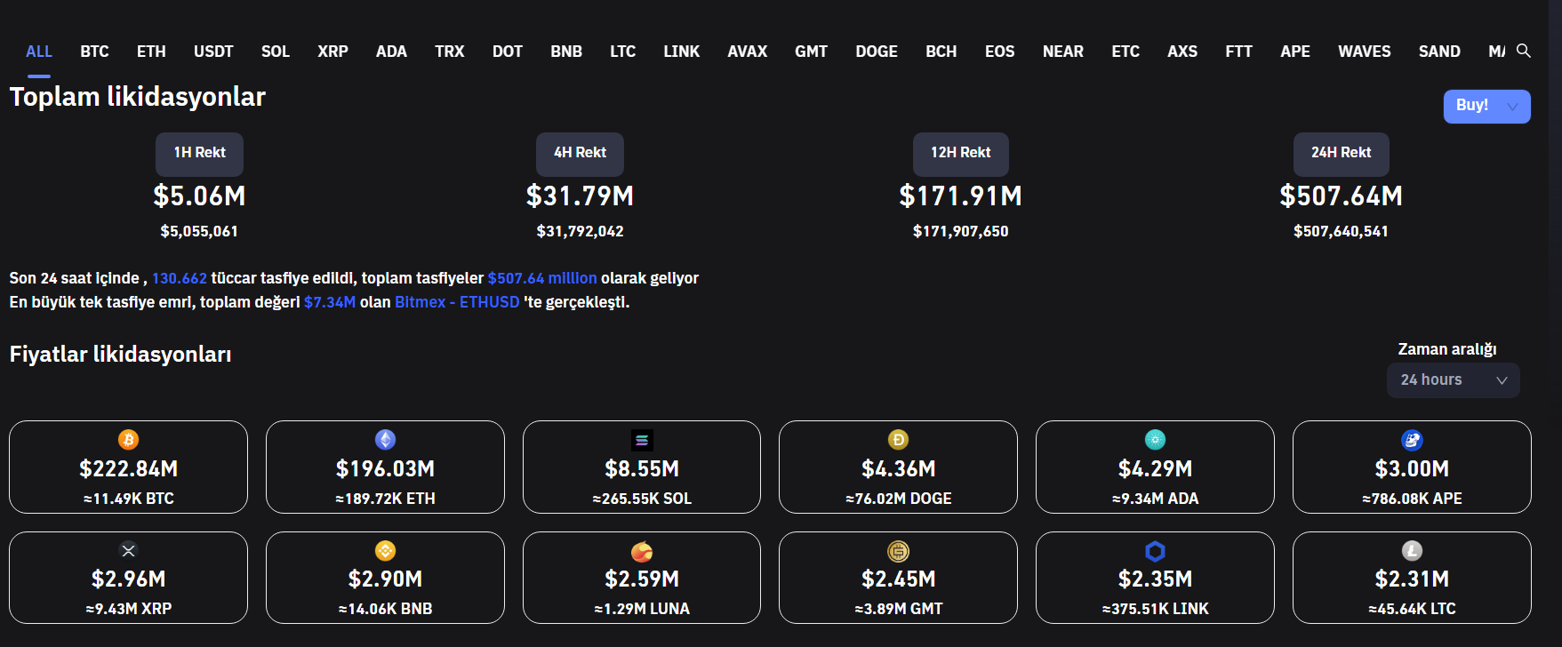 Yaşanan bu volatil hareketler esnasında ise 130 binden fazla kripto para yatırımcısı, açtıkları kaldıraçlı pozisyonlar sonucu likit edildi.