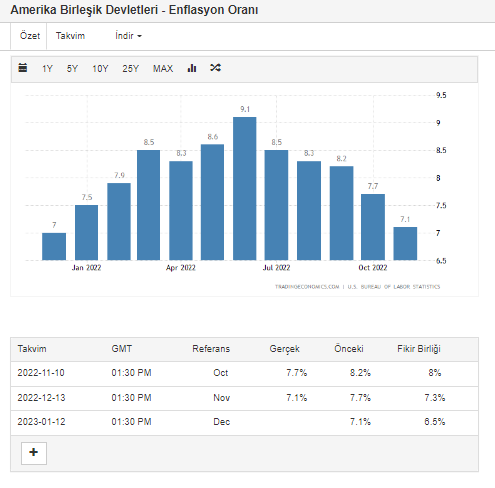 Şuan itibariyle bağımsız bir veri sağlayıcısı olan Trading Economics’in aktardıklarına göre, ABD’de yıllık enflasyon verilerinin yüzde 6.5 olarak açıklanması bekleniyor. Tam 5 aydır art arda düşmeye devam eden enflasyon oranları, genel beklentiye göre bu ayda sert bir şekilde düşüş yaşayacak.