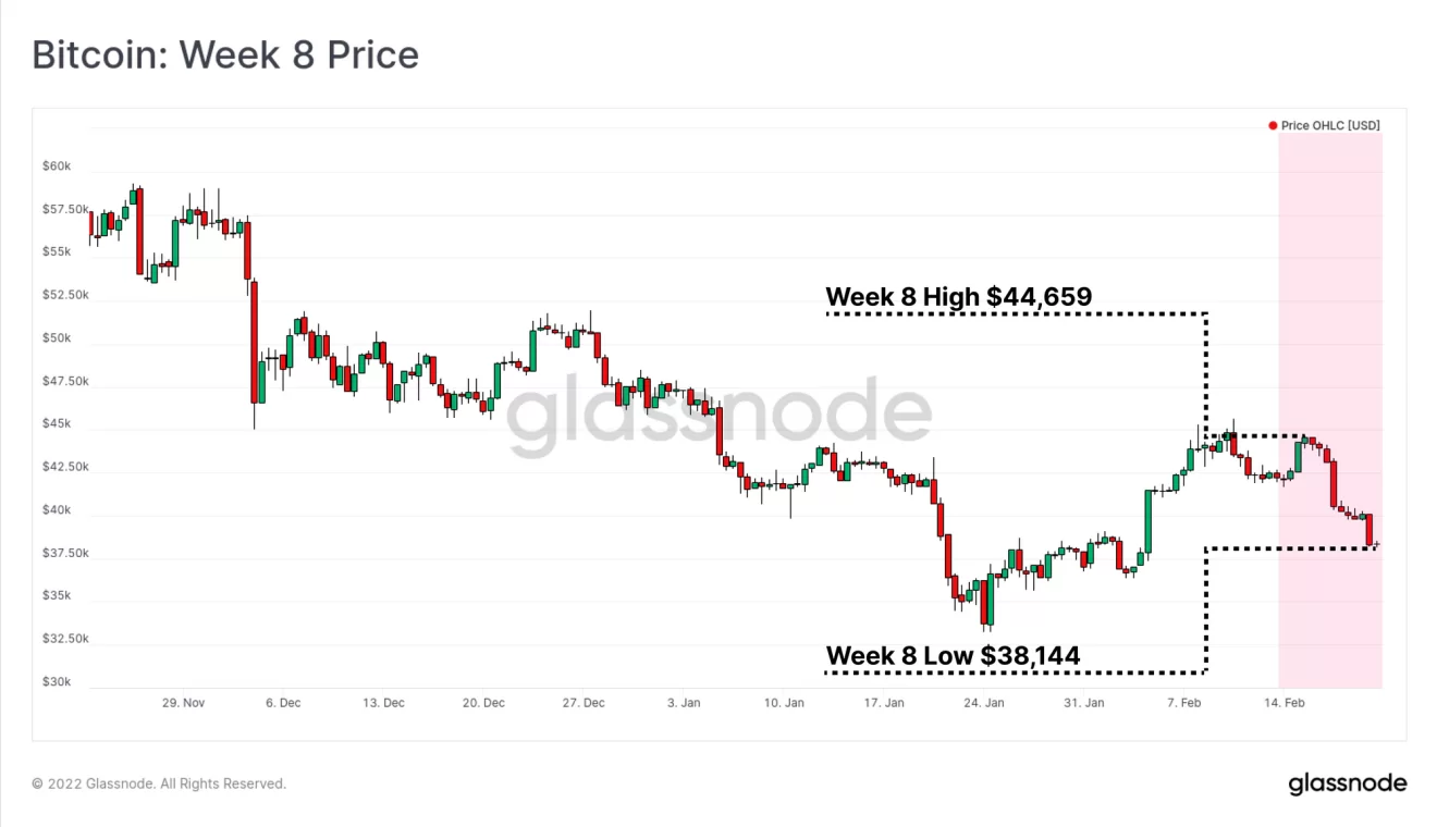 Glassnode uzmanları, Bitcoin’in 8 haftalık ortalama fiyat grafiğini baz alarak analizlerini tamamladı. Bu analize göre 44.659 dolar seviyesi en yüksek nokta olarak belirlenirken, en düşük nokta ise 38.144 dolar olarak açıklandı.