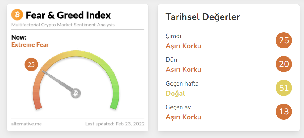 Yatırımcıların üzerinde bulunan korkunun gün geçtikçe arttığını aktaran uzmanlar, crypto fear and greed index’i hedef gösteriyorlar.