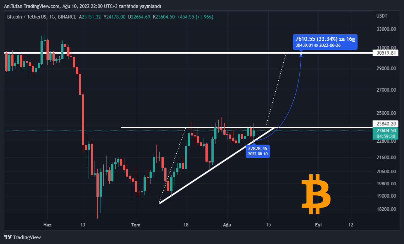 Olası düşüş senaryosunda ise okurlarımızın 22.600 dolar seviyesinde bulunan yatay destek noktasını ve yükselen trendi takip etmeleri gerekmekte.