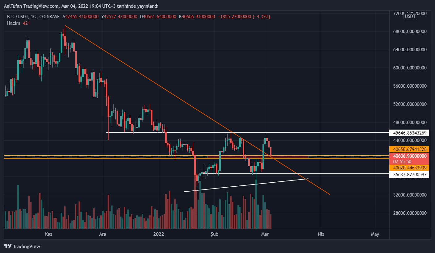 40.000 dolar destek seviyesinden alım yapabilecek olan okurlarımız, bu destek seviyesi altı stoplu bir şekilde 45.000 dolar hedef seviyesini takip edebilirler.