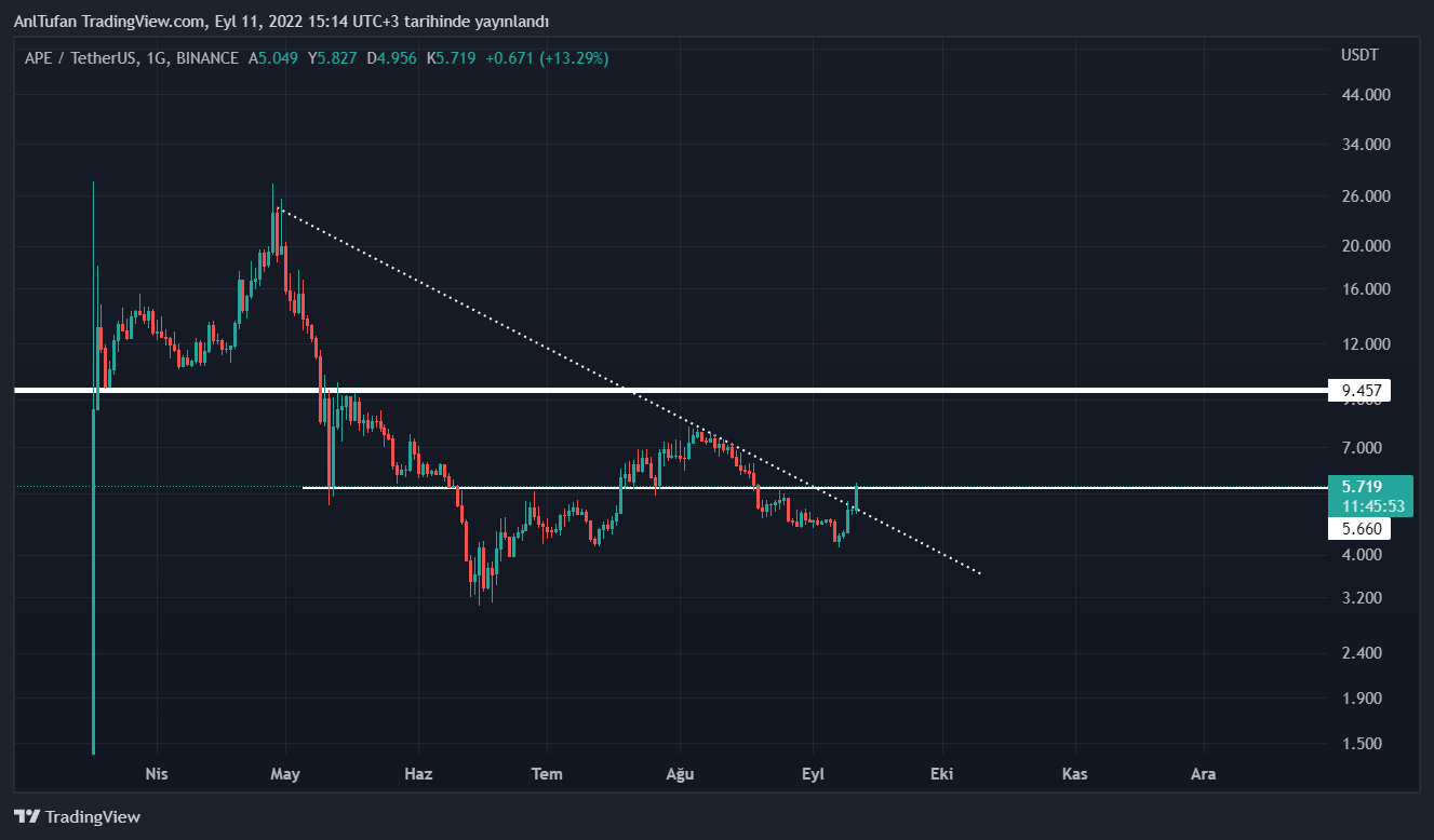 Şuan itibariyle kritik direnç noktası olan 5.66 doların hemen üzerinde yer alan APE, direnç üstü günlük kapanış yapması gerekmekte.