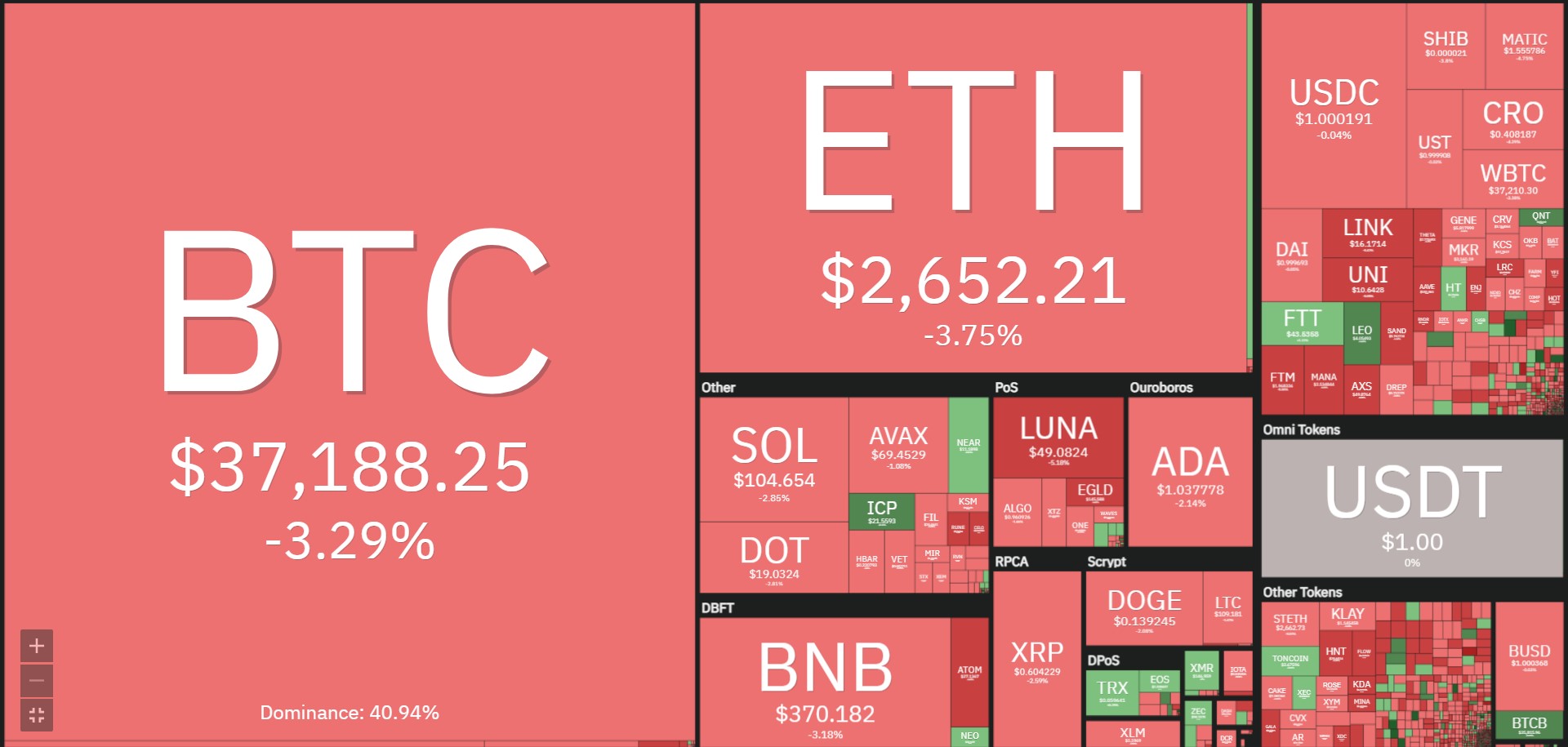 Bitcoin son 4 saat içerisinde %5 düşerek bütün altcoinlerinde sert düşüşler yaşanmasına sebep olmuş durumda.