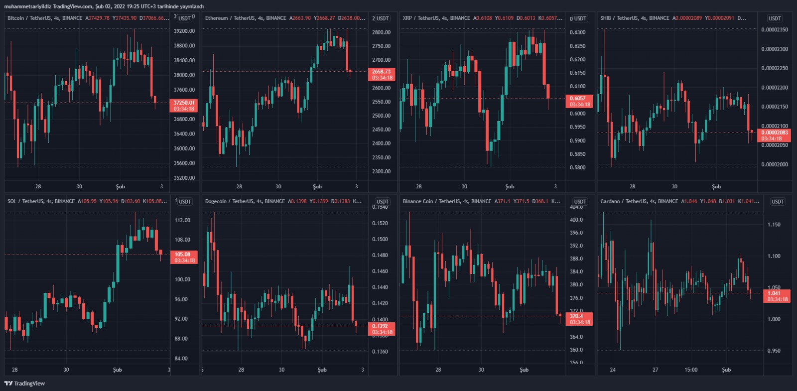 - Cardano (ADA) son 4 saat içerisinde %3.5 düşüş yaşayarak en az etkilenen altcoin oldu.