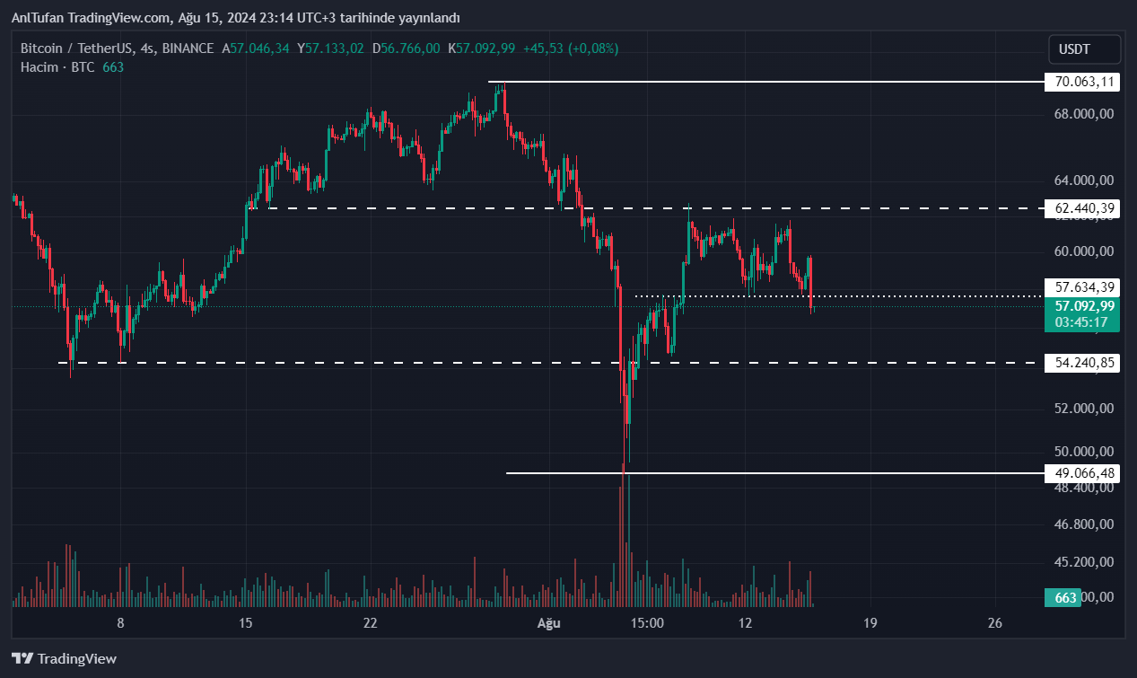 Kısa vadede 54.250 dolar desteğini kaybetmesi beklenmeyen BTC, büyük bir kaotik haberin gündeme düşmesi durumunda ise 5 Ağustos tarihindeki dip nokta olan 49 bin doları test etmek isteyebilir.
