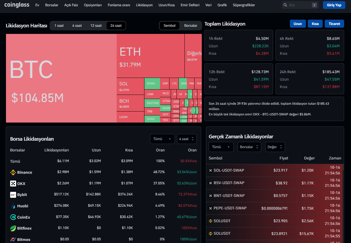Toplam likidasyon miktarını incelediğimizde ise 185 milyon dolara ulaştığı görülüyor. Bu miktarın son dönemlerin zirvesi olduğu gözlenmekte.