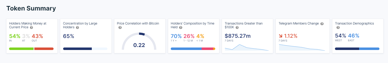 Başarılı bir veri sağlayıcısı olan IntoTheBlock verilerine göre, mevcut Dogecoin (DOGE) yatırımcılarının sadece yüzde 43’ü zararda bekliyor. Yüzde 3’lük yatırımcı kesiminin ise ne zararı ne de karı bulunmakta.