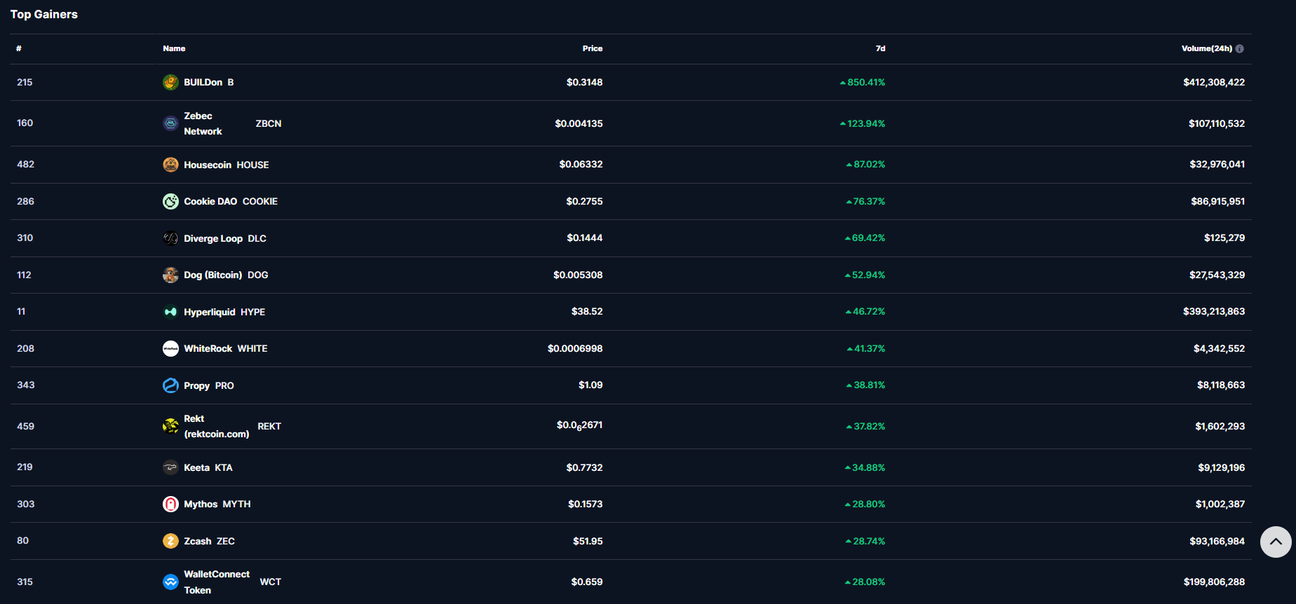 B’de yaşanan 10 kata yakın rallinin yanı sıra ZBCN‘nin de bu hafta %100’den fazla değer kazandığı görüldü. Ayrıca HOUSE, COOKIE, DLC, DOG ve HYPE‘ın da bu haftanın en çok kazandıranları listesinde yer alması dikkat çekti.