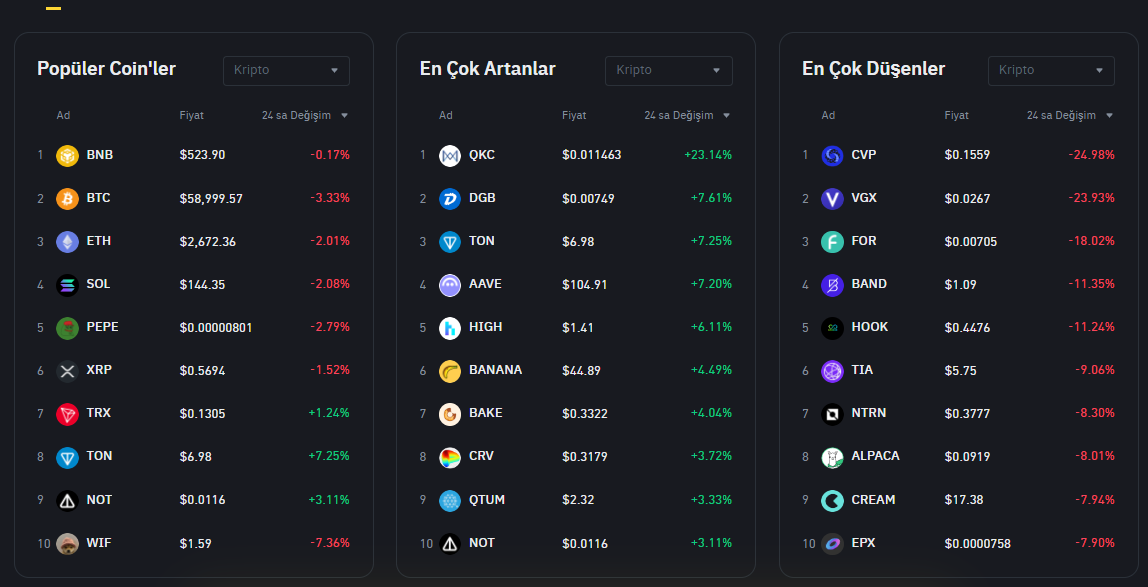 CVP, VGX, FOR, BAND ve HOOK ise %10’dan fazla değer kaybetti. CVP ve VGX’deki düşüşlerin %20’leri de aştığı görüldü. TIA, NTRN ve ALPACA‘da günün en çok değer kaybedenlerinin arasında yer alıyor.