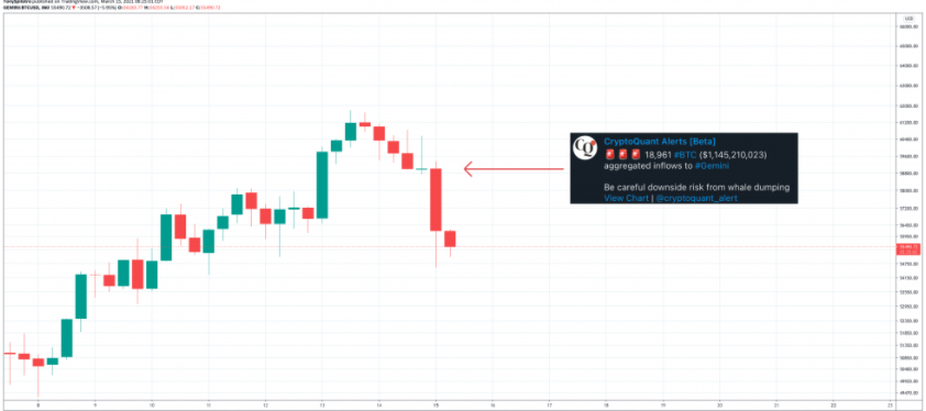 İlk olarak CryptoQuant tarafından açıklanan verilerde, bir balinanın Gemini kripto para borsasına 1,145 milyar dolar değerinde toplam 18.961 BTC gönderdiği ortaya atıldı. Bitcoin fiyat grafiğine bakıldığında da tam olarak bu uyarı sonrasında fiyatın çakıldığı ve yaklaşık 6.000 dolarlık düşüş yaşandığı görülüyor. Bu durum aslında geçtiğimiz ay yaşanan olayın tekrarlanacağını düşünen yatırımcılar tarafından da gerçekleştirilmiş olabilir.