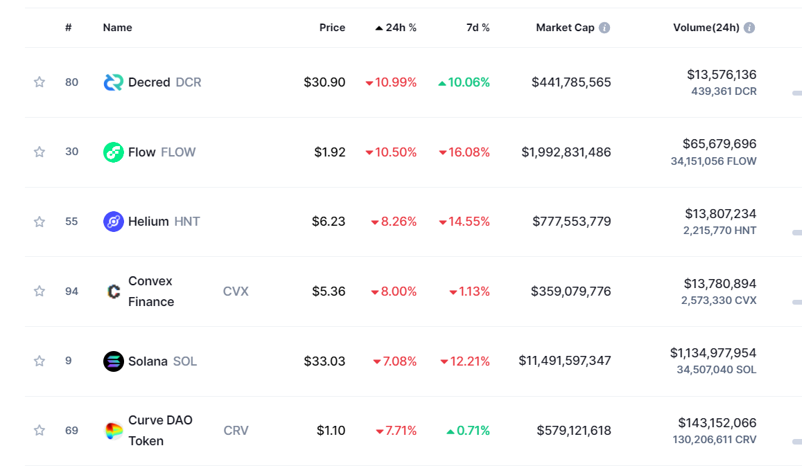 CoinMarketCap’in aktardıklarına göre, BTC’nin düşüşlerinden en çok bu 5 altcoin etkilendi: