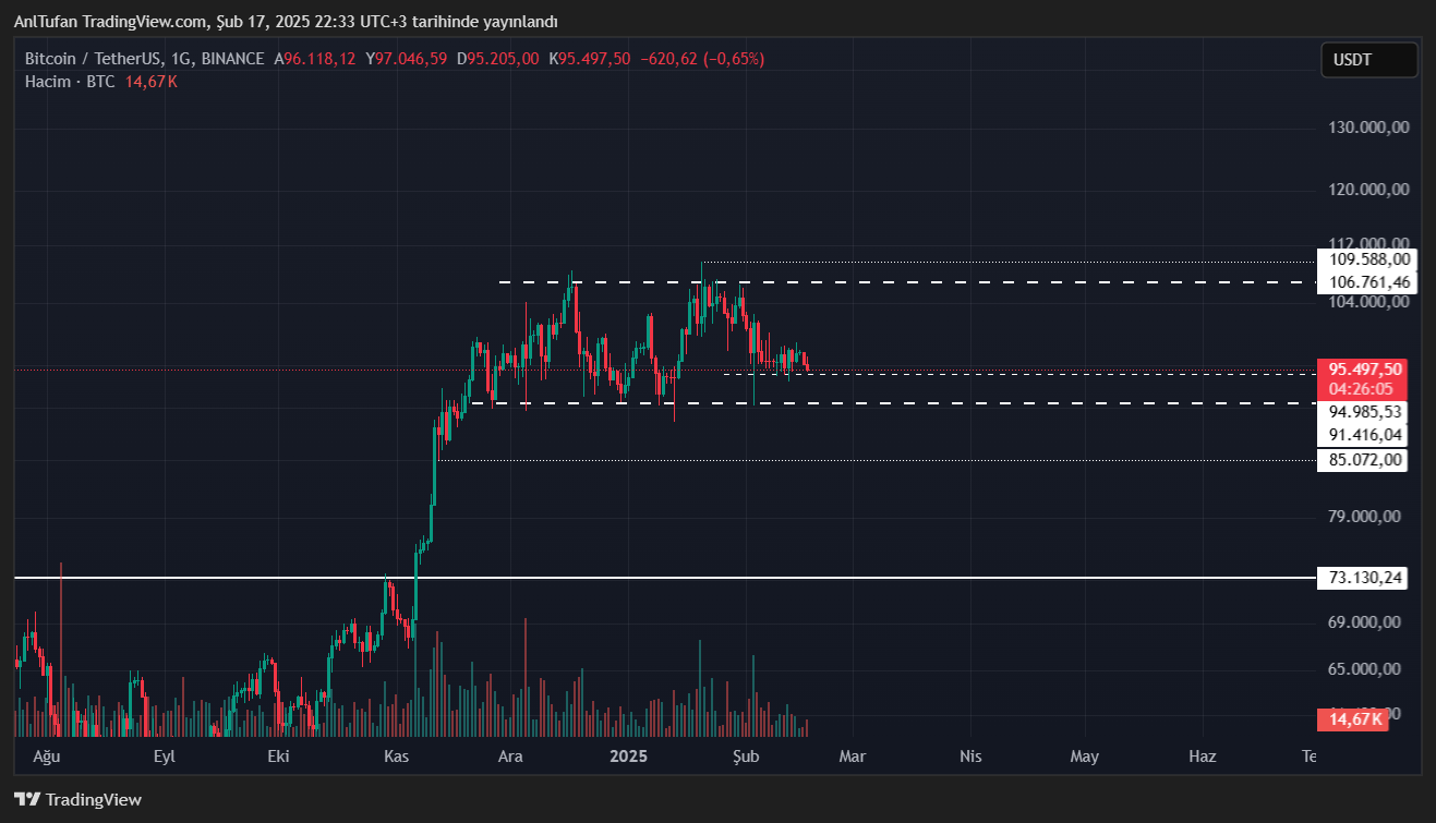 Ethereum’un yükselişlerinin önündeki en büyük engel ise an itibariyle Bitcoin. Bir süredir bearish hareketler sergileyen BTC’nin, ETH’de yükselişlerin başlayabilmesi için 95 bin dolar ara destek noktasını kaybetmemesi gerekiyor.