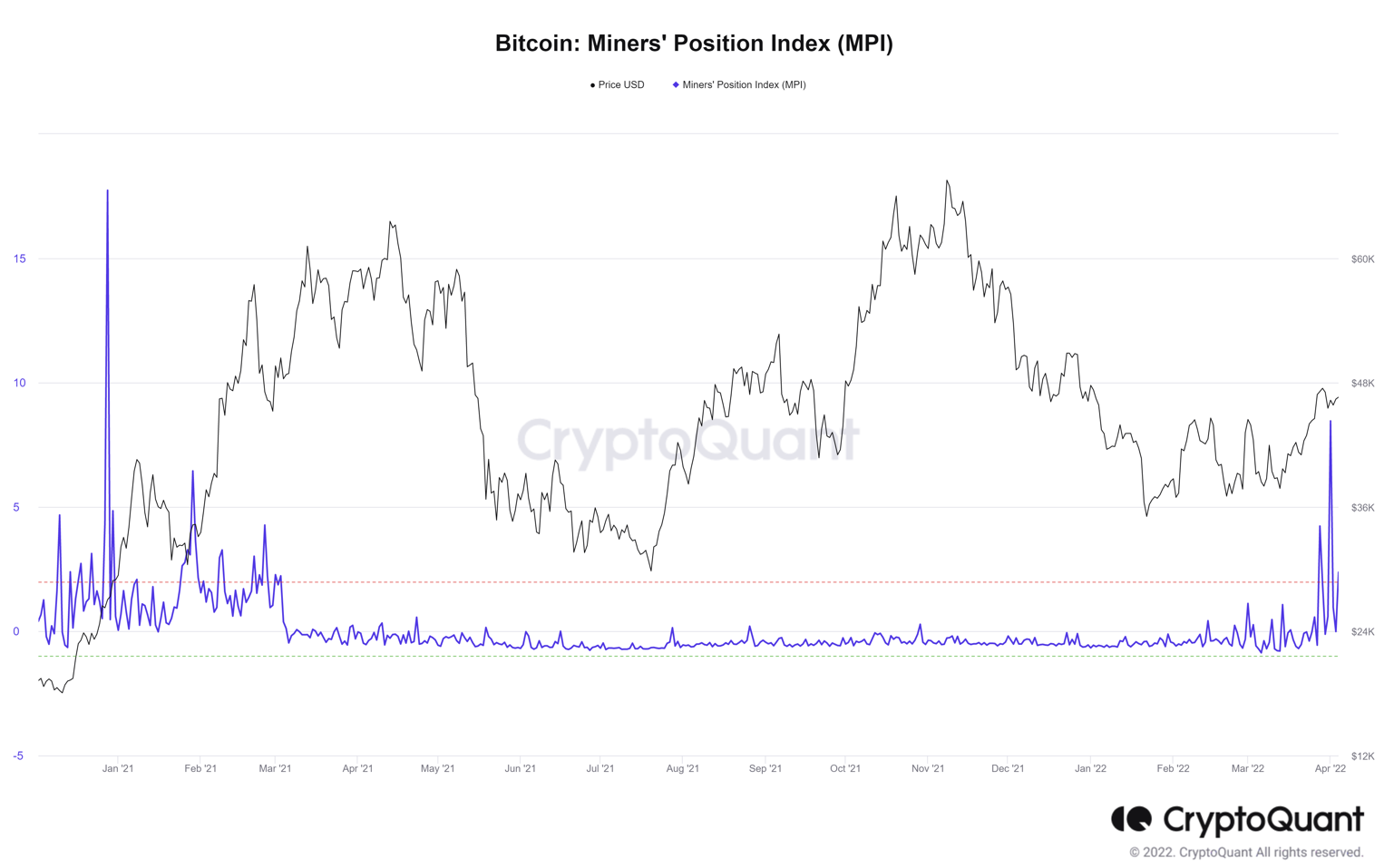 Son günlerde de kademeli bir şekilde artan BTC madenci satışları, lider kripto parayı baskılasa da, halen 45.000 doların kırılmasına neden olmuş gibi gözükmüyor.