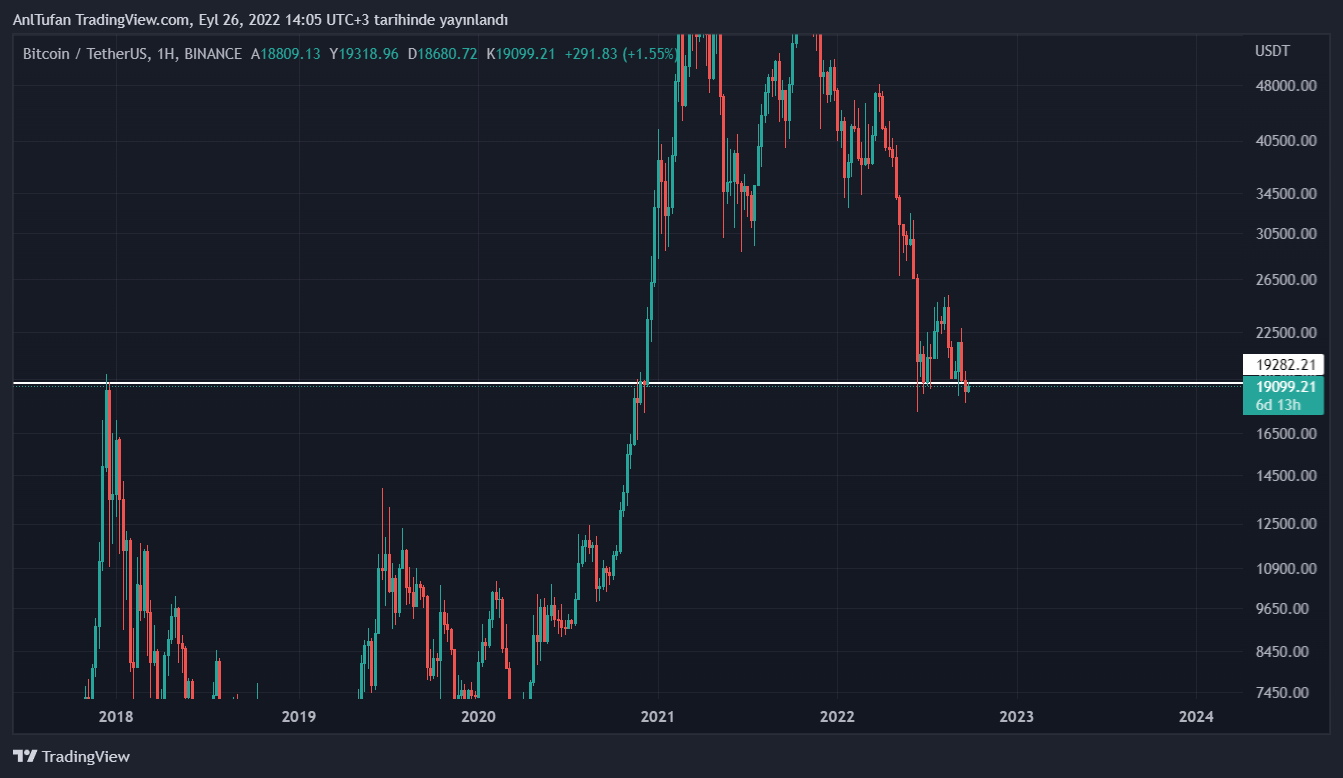 Her ne kadar Bitcoin geçmiş dönemlerde 17.700 dolar seviyelerine kadar iğne atmış olsa dahi, bu haftalarda dahi 19.300 doların üzerinde haftalık kapanış gerçekleştiriyordu.