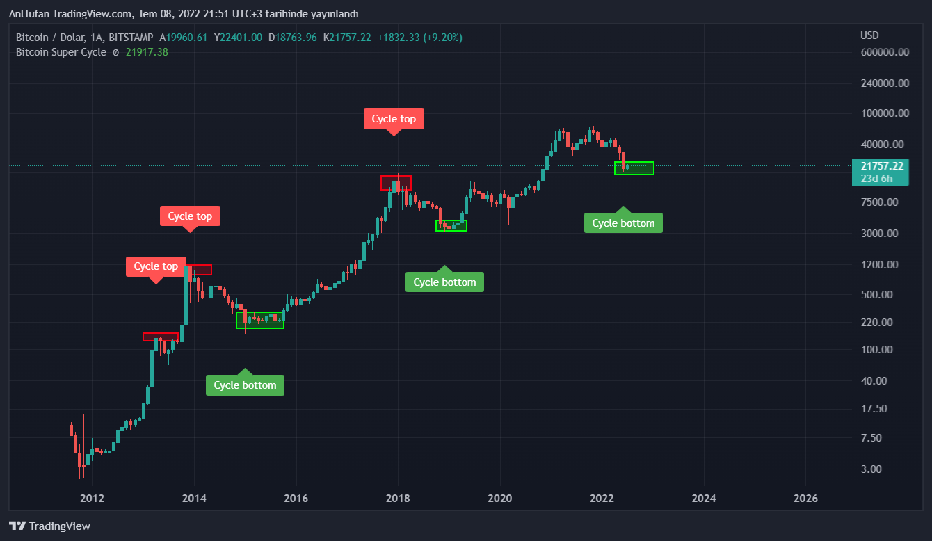 Bitcoin tarihi boyunca aylık grafik üzerinde sadece 5 kere sinyal veren “Super Cycle” göstergesi, bu sinyallerinin hepsinin nokta atışı başarılı olduğu dikkat çekmekte.