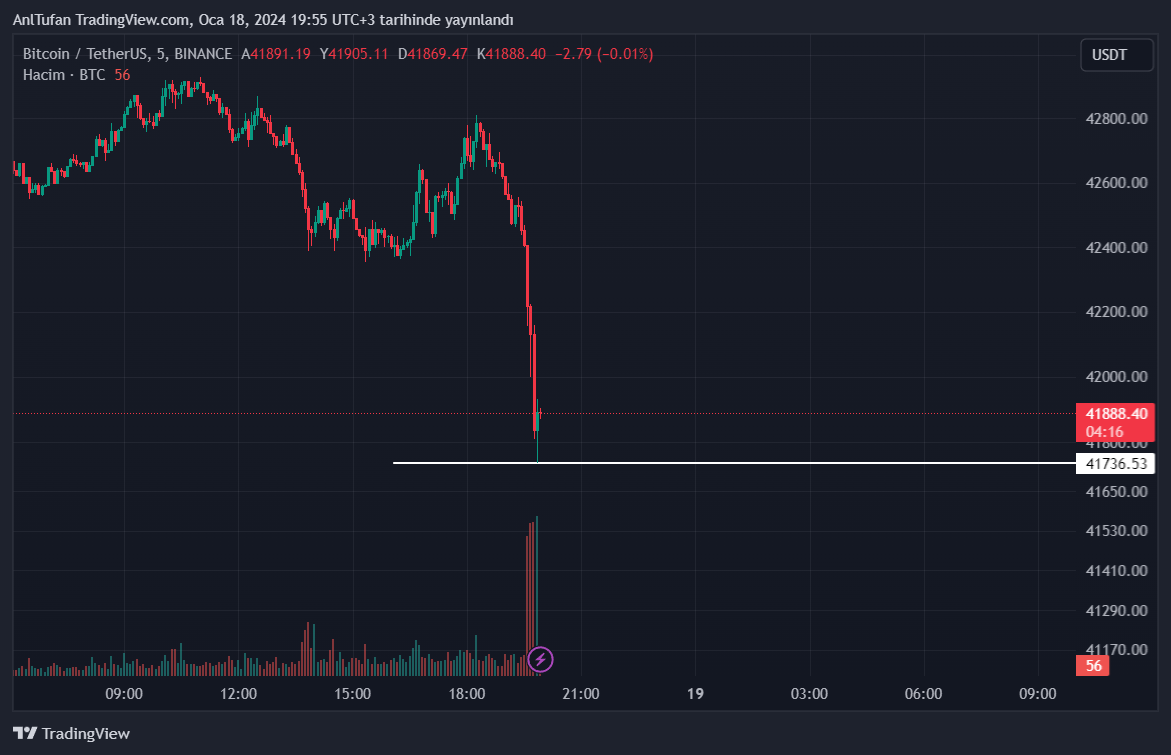 Bitcoin’in önümüzdeki dakikalarda 41.700 doların altına inmesi, düşüşlerin daha da sertleşmesine neden olabilir.