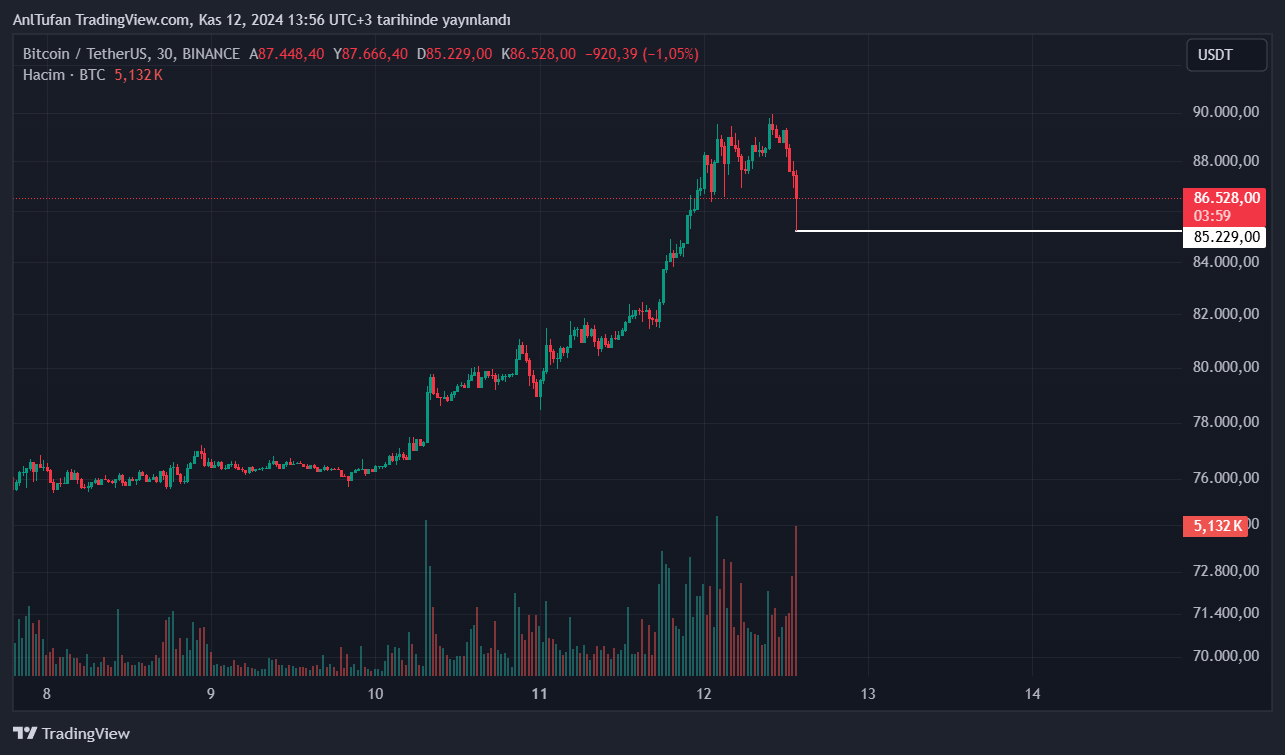 Kripto para sektöründe bugün itibariyle düşüşlerin hakimiyet kurduğu görülüyor. Lider kripto para birimi Bitcoin (BTC) bu sabaha saatlerinde 89.940 dolar seviyelerine kadar yükselmiş olsa da, son dakikalarda düşüşe geçti. BTC son düşüşler ile birlikte 85.229 doları gördü.