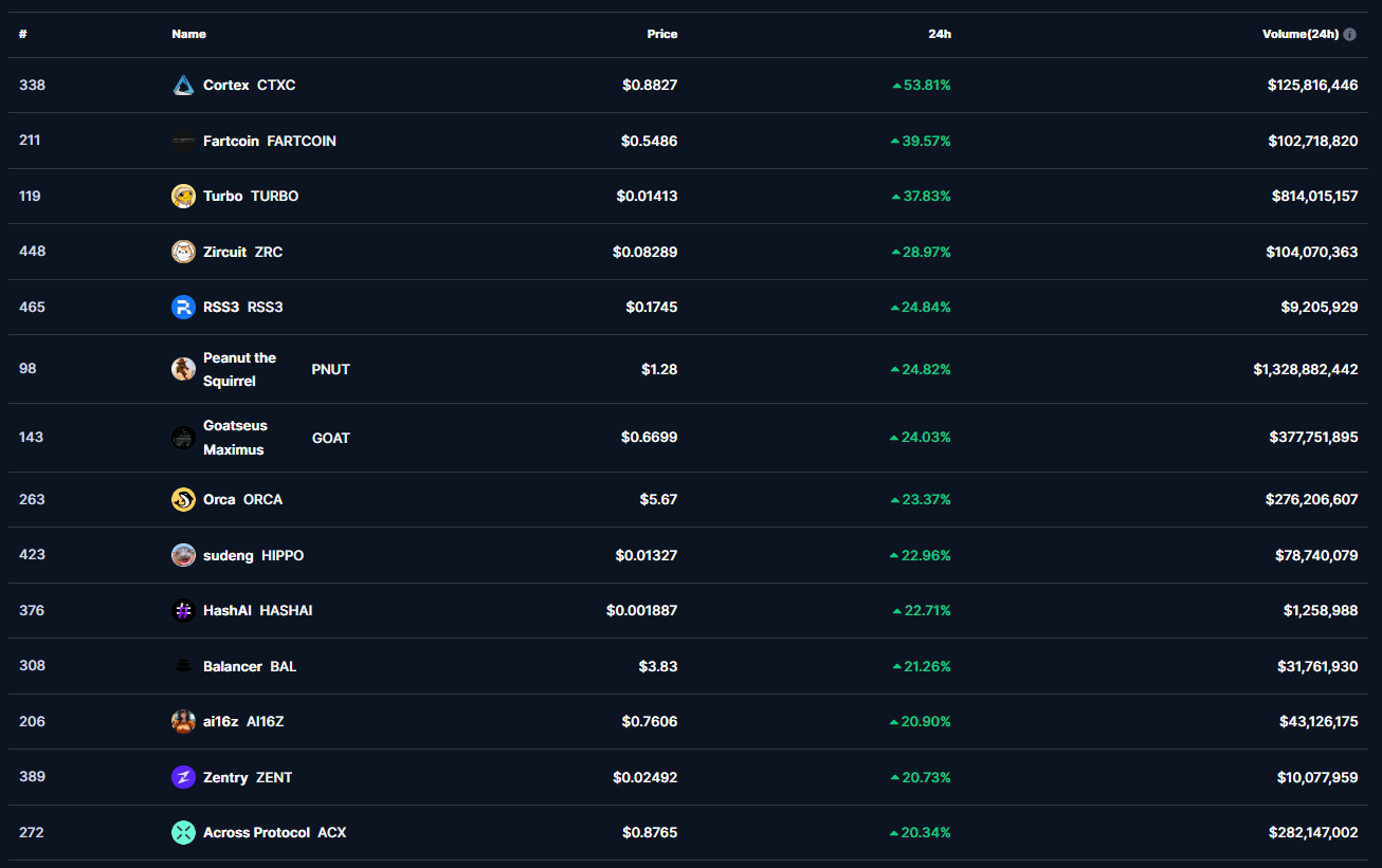Hadi gelin bugünün en çok yükselen altcoin’lerine yakından göz atalım: