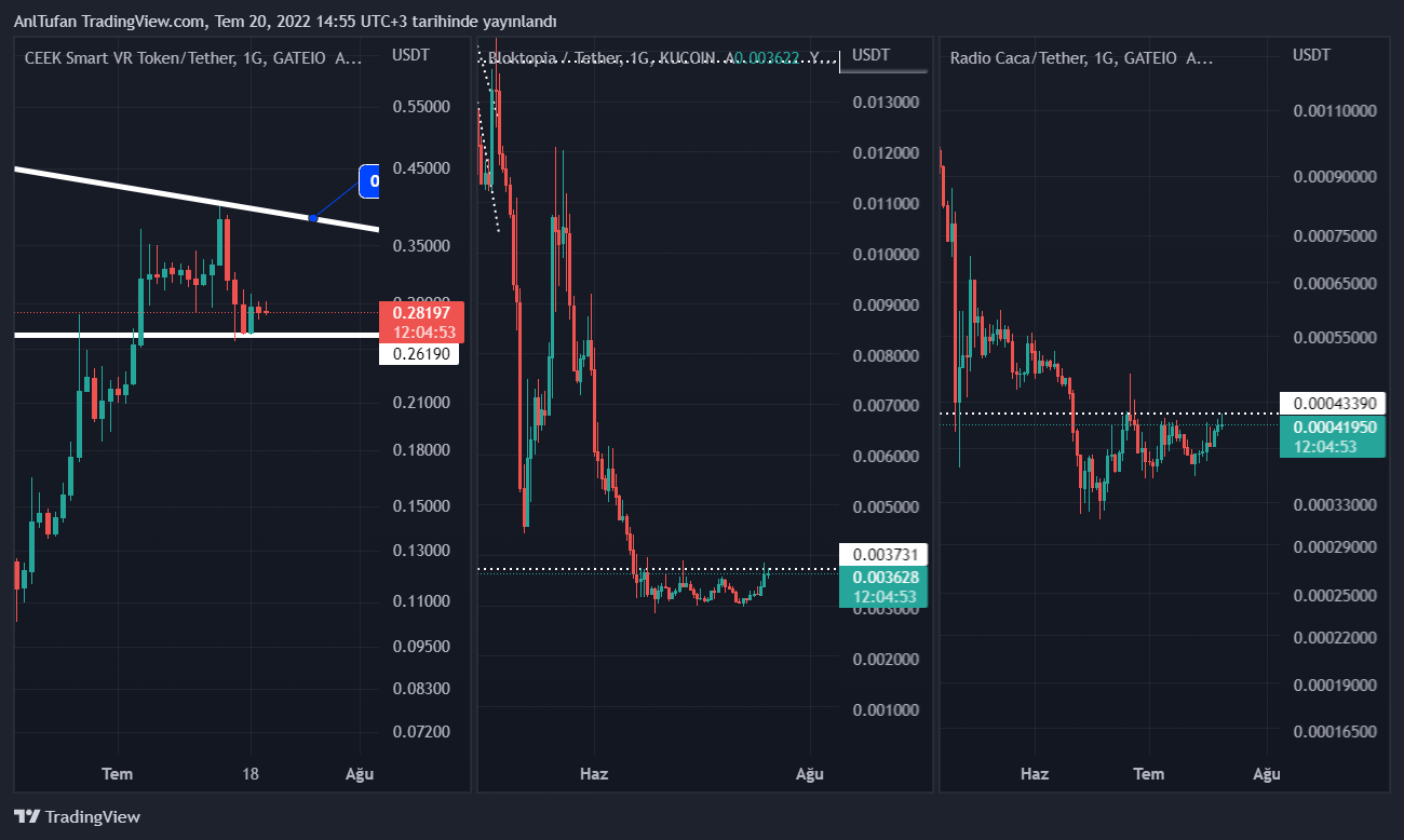 CEEK her ne kadar bir fomo hareketiyle yükseliş yaşamış olsa da, tekrardan son günlerde değer kaybetmekte. Ha keza BLOK ve RACA içinde durumun çok farklı olmadığı görülüyor.
